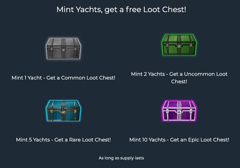 Mint a yacht and get a free Loot Chest, but only until the mission closes tomorrow. Don’t let this one sail past you ⛵️